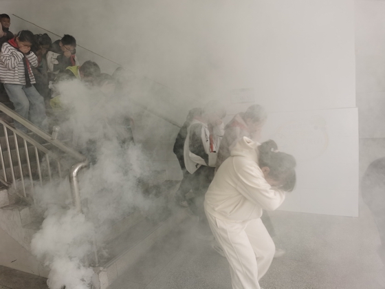 当日上午,校园内警报声骤然响起,火灾逃生演练正式拉开帷幕。各班级教师迅速反应,按照预定的疏散方案,有序组织学生撤离。同学们在老师的引导下,捂住口鼻,低姿前行,沿着指定的疏散路线,快速而有序地向指定地点集合。整个疏散过程紧张有序,全校师生仅用了4分钟便全部安全到达指定位置,成功完成了此次火灾逃生演练。