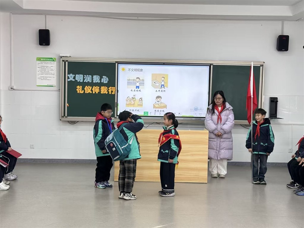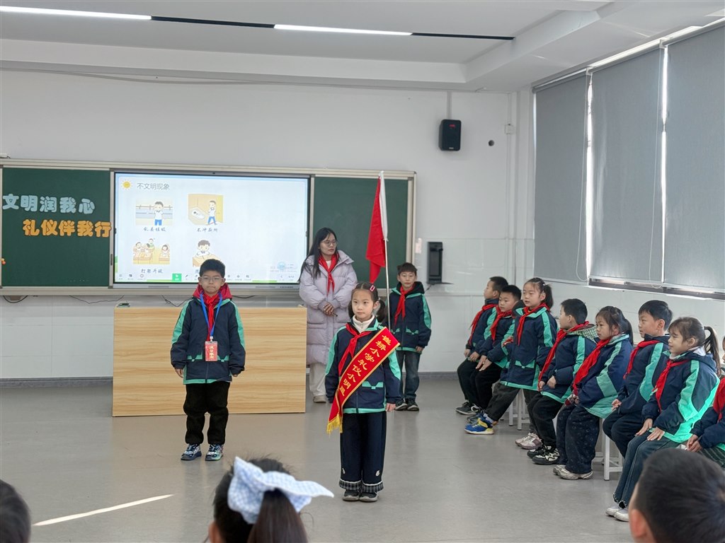 中队辅导员 蒋婧艳:“此次活动,让文明礼仪的种子在队员心中生根发芽。队员们纷纷表示,今后会以实际行动践行文明规范,争做有品德、懂礼仪的新时代好少年。”